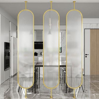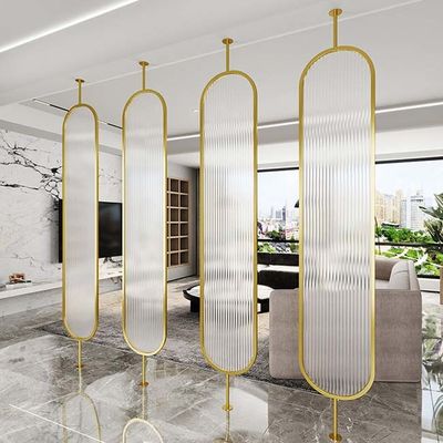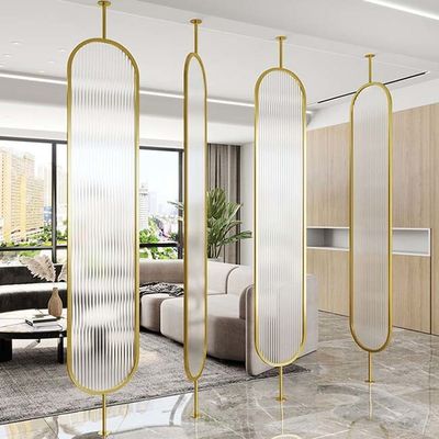 Partisi Layar Stainless Steel Bentuk Oval Warna Emas dengan Kaca Moru