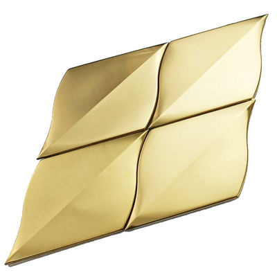 Bentuk Daun Ubin Mosaik Stainless Steel Warna Emas untuk Dinding