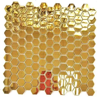 Ubin Mosaik Stainless Steel Warna Emas Hexagon untuk Desain Interior
