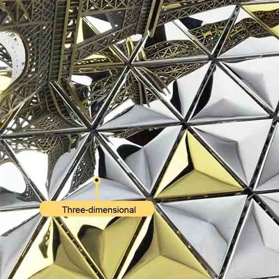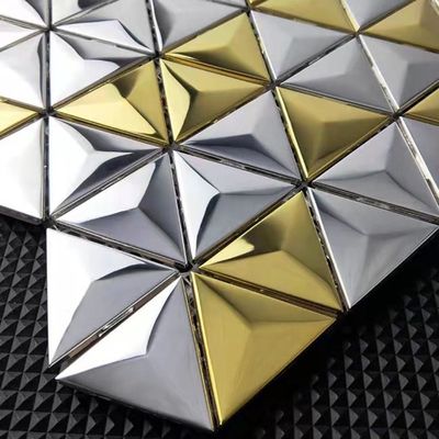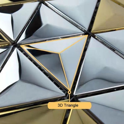 3D Cone Segitiga Perak Emas Stainless Steel Ubin Mosaik untuk Hiasan Dinding