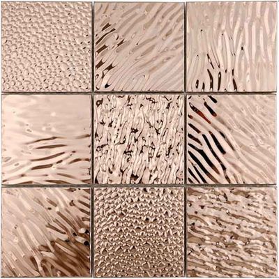 Ubin Mosaik Stainless Steel Warna Timbul 9 Pola Persegi untuk Hiasan Dinding