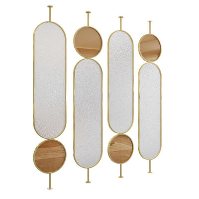 Partisi Layar Stainless Steel Warna Emas Garis Rambut Bentuk Bulat Dengan Kaca Seni