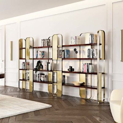 Kabinet Pajangan Baja Tahan Karat Warna Emas Sampanye Kustom |