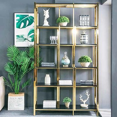 Kabinet Pajangan Baja Tahan Karat Warna Emas Sampanye Kustom