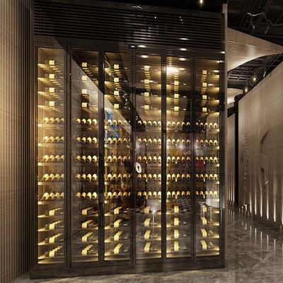 OED Grosir Custom Tempered Glass Constant Temperature Cooler Stainless Steel Wine Cellar Storage Bar Display Cabinet