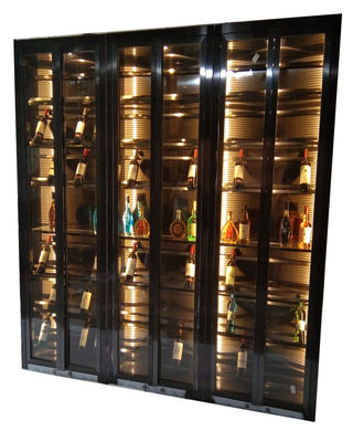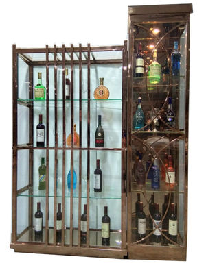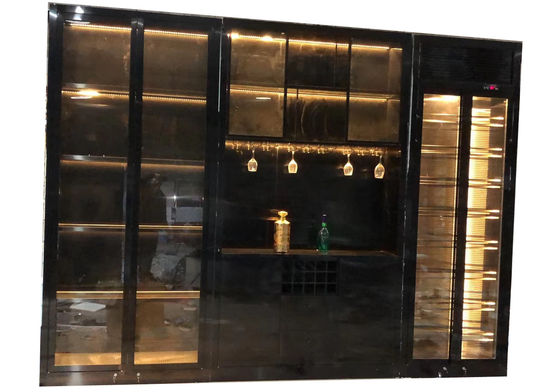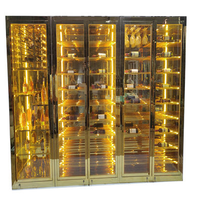 Furnitur Ruang Makan Mewah Modern Pintu Kaca Baja Rinsing Dengan LED Rack Cabinet Wine