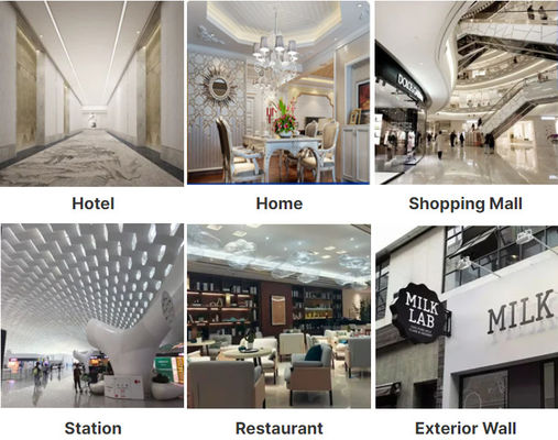 Digunakan secara luas untuk dekorasi arsitektur & interior, seperti dekorasi lift, pintu mewah,Dekorasi dinding, papan nama iklan, peralatan sanitasi, dekorasi langit-langit, koridor, aula hotel, fasad toko, dll.