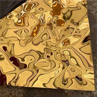 4X8feet 8K Mirror Ti-Gold Water Ripple Stainless Steel Sheet untuk Dekorasi Langit-langit