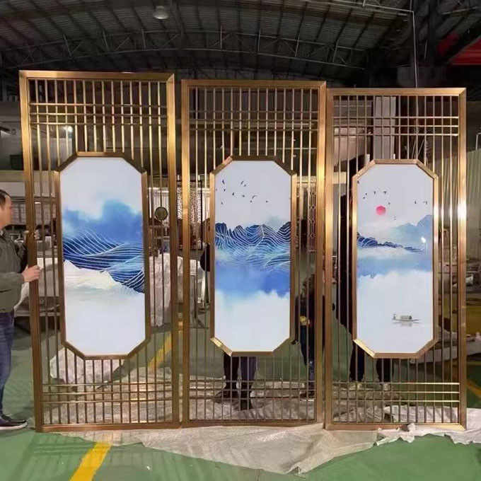 Metal Desain Modern Hairline Stainless Steel Pribadi Partisi Screen ruang tamu 7