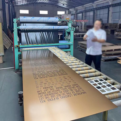 Pola yang terukir dibuat dengan secara selektif menerapkan film tahan asam pelindung ke daerah yang ditunjuk dan mengukir asam daerah yang tidak dilindungi.Mengubah warna menjadi abu-abu perak yang kusam, dan mengeraskan permukaan, yang dapat dibandingkan dengan penggilingan, cermin super atau finishing lainnya untuk menciptakan ribuan variasi. Finishing mengukir juga dapat diwarnai sebelum atau setelah mengukir.Ini banyak digunakan untuk aplikasi dekorasi, seperti pintu lift, panel dinding, coping dan trim.