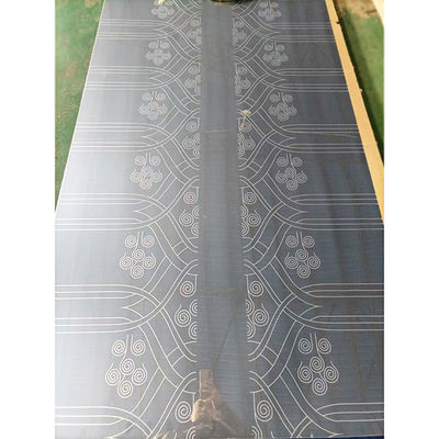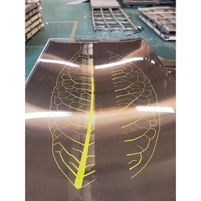 Pola yang terukir dibuat dengan secara selektif menerapkan film tahan asam pelindung ke daerah yang ditunjuk dan mengukir asam daerah yang tidak dilindungi.Mengubah warna menjadi abu-abu perak yang kusam, dan mengeraskan permukaan, yang dapat dibandingkan dengan penggilingan, cermin super atau finishing lainnya untuk menciptakan ribuan variasi. Finishing mengukir juga dapat diwarnai sebelum atau setelah mengukir.Ini banyak digunakan untuk aplikasi dekorasi, seperti pintu lift, panel dinding, coping dan trim.