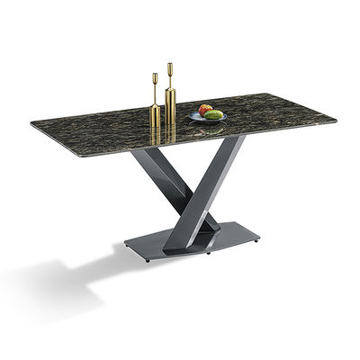 Meja Makan Modern Batu Sinter Hitam Titanium Stainless Steel