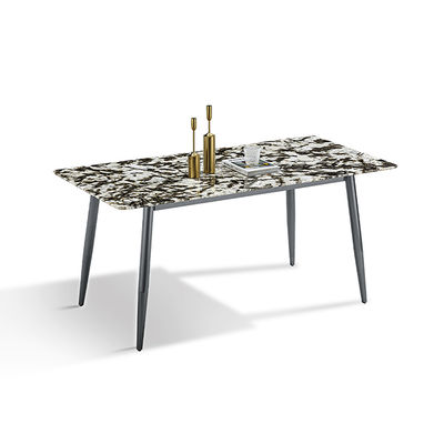 Meja Modern Batu Sinter Warna Abu-abu Baja Karbon Dasar Meja Makan