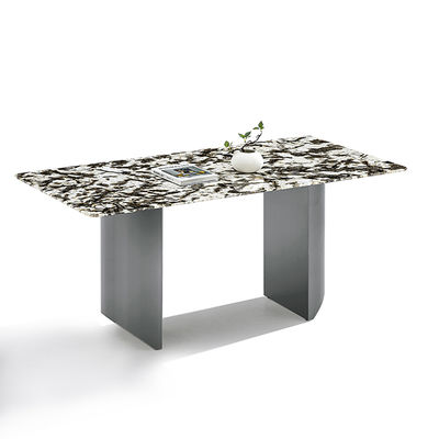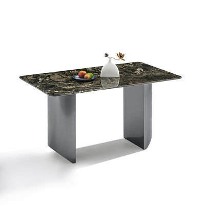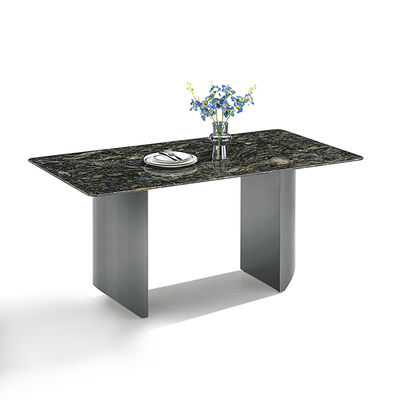 Modern Sintered Stone Tabletop Hitam Warna Cermin Base Baja Rostless Meja Makan