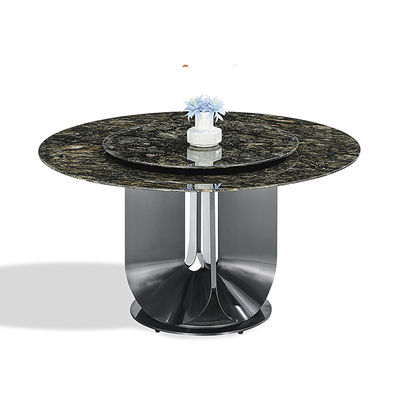 Meja Makan Batu Sinter Bulat Modern Warna Hitam Meja Makan Stainless Steel dengan Meja Putar