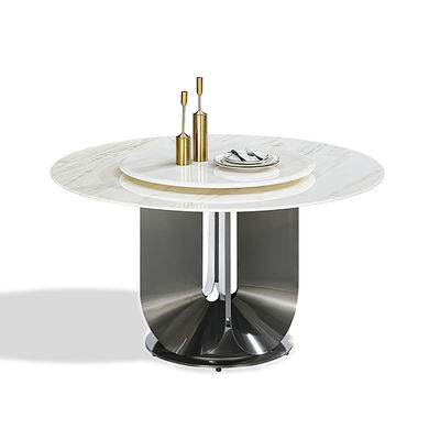 Meja Makan Stainless Steel Mewah dengan Permukaan Batu Buatan yang Berputar