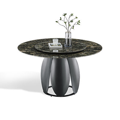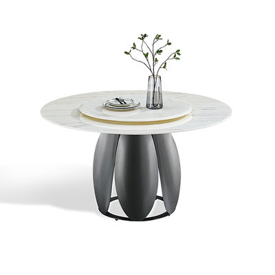 Meja makan stainless steel mewah dengan atas batu buatan yang berputar