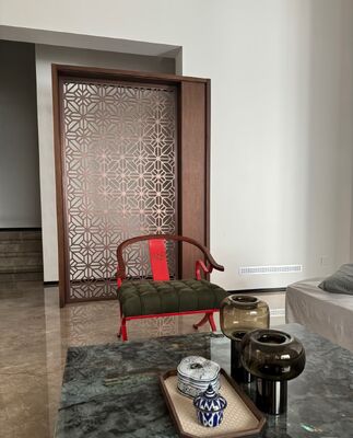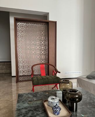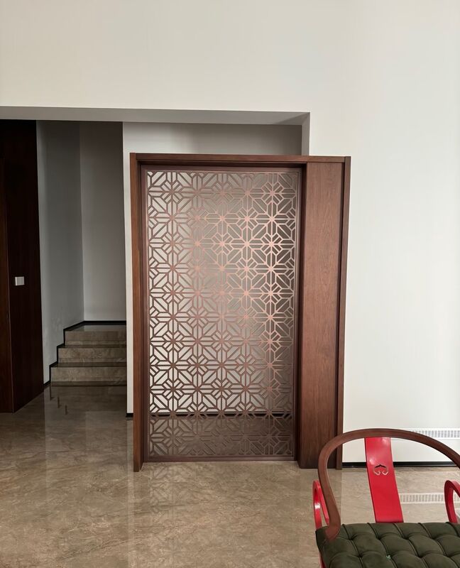 High-end stainless steel custom room divider dengan desain yang terinspirasi Baroque yang menampilkan pola budaya Asia untuk interior mewah.